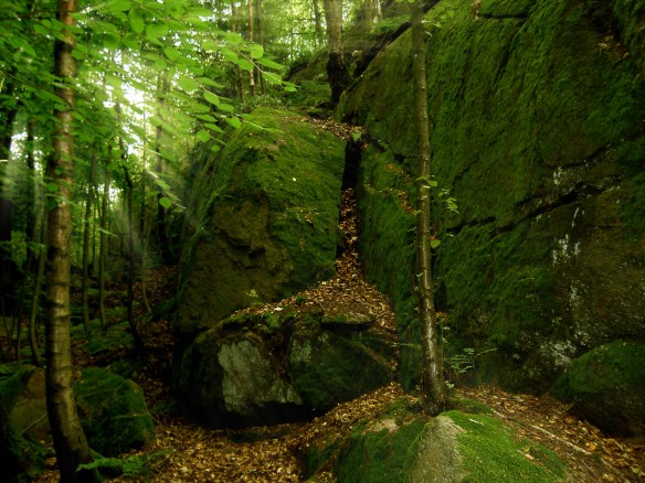 När man går förbi mäktiga, mossgröna bergväggar – som den på fotot här – är det inte svårt att förstå hur berättelserna om trollberg och bergtagna människor kommit till.