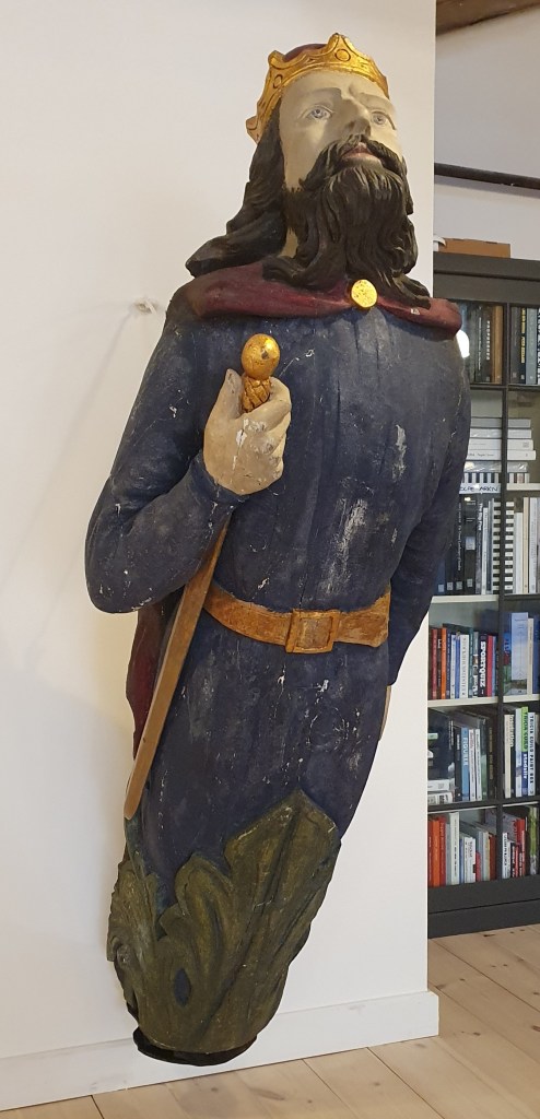”Folktro. En besjälad värld” är utgiven av Bokförlaget Stolpe. Den är rik både i bild och text – där finns också fler artiklar av författare som inte hade möjlighet att närvara på seminariet. Jag rekommenderar förstås alla men vill särskilt nämna Camilla Ingemark Asplunds artikel om bergtagning. Redakörer för boken är Kurt Almqvist och Lotta Gröning.Lotta Gröning berättar med inlevelse den tragikomiska historien om en luffare som en gång sägs ha försökt hoppa över masugnen.Vi fick också tillfälle att titta på den fantastiska samlingen av galijonsfigurer – de här båda stal mitt hjärta.Och denna stilige herre är ju också rätt episk!