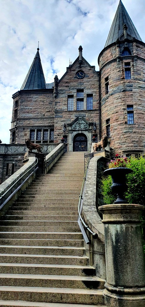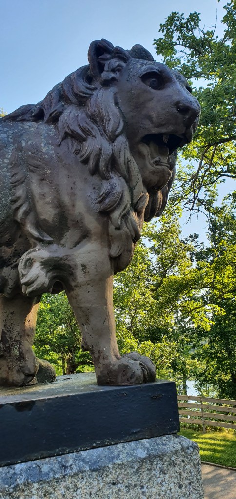Lägg märke till stenlejonen som vaktar slottstrappan. De för inte bara tankarna till stenlejonet som Aslan väckte till liv med sin andedräkt i The last battle utan de skänker också tur till den som hälsar på dem med en klapp.